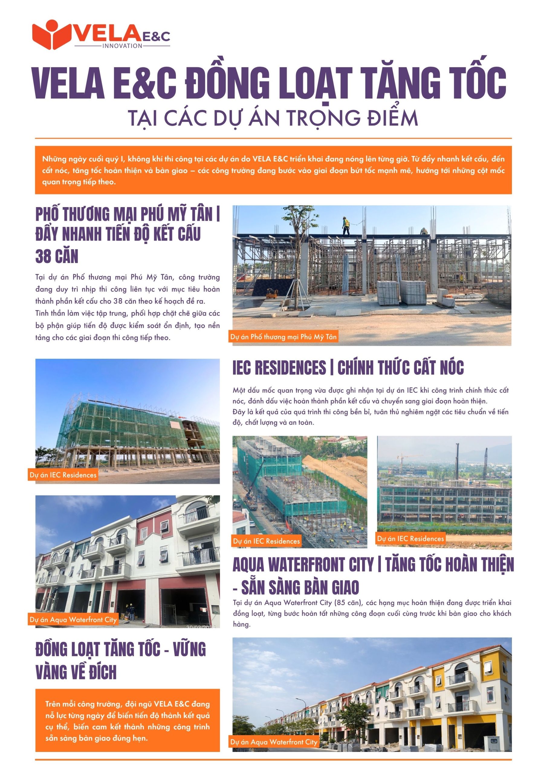 VELA E&C ĐỒNG LOẠT TĂNG TỐC TẠI CÁC DỰ ÁN TRỌNG ĐIỂM